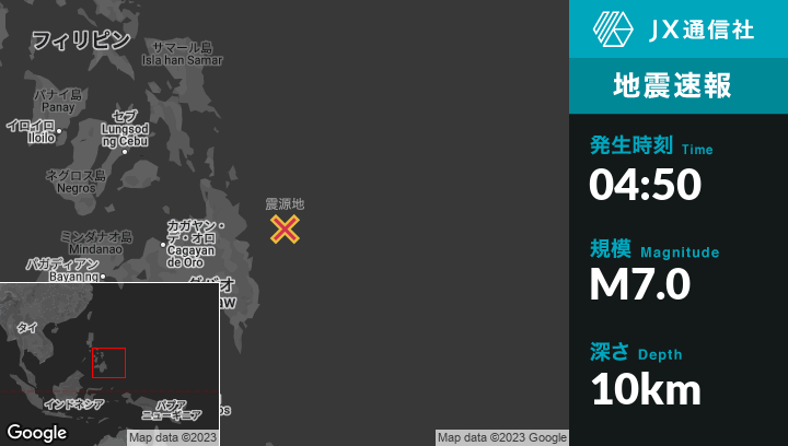 | 震源地 | フィリピンのAras-asanから東86kmの地点 |